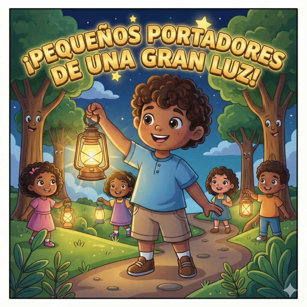Esa noche, antes de dormir, Santiago pensó: «Creo que Jesús es como mi linterna. Aunque yo sea un niño pequeño, ¡Su luz brilla fuerte dentro de mi corazón!»
